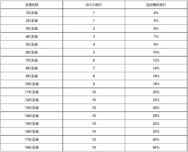 2个同阶的龙魂可进行幸运合成,成功率为50%。合成成功可获得1个更高阶的龙魂,至少提升1阶,最高提升7阶(如:2个8阶龙魂,有50%几率合成1个9-15阶龙魂)