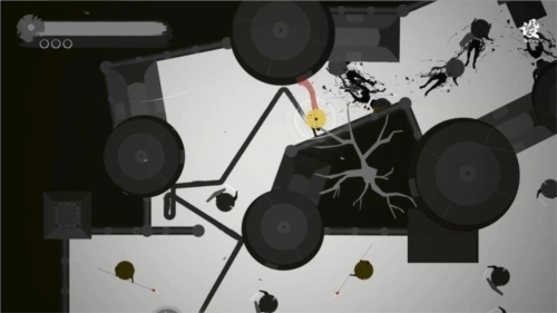 游戏核心设定为气力值和弹射机制。气力值影响冲刺的距离;冲刺途中遇到障碍物会进行反弹,同时增加冲刺距离;冲刺途中的连击数越多,气力值回复越多,落地后便可再次快速释放剑招。因此需要合理规划冲刺路线和落点位置,既实现更多连击,又要避免让自己陷入敌人包围之中。
