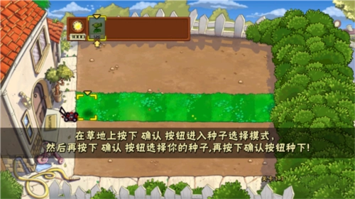 2、先在种植选择界面按下确认键,接着在草地上选好合适的位置,最后点击确定就能成功种下植物了。