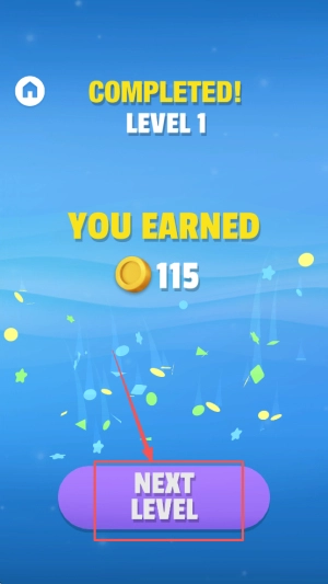 领取奖励:当画面显示“COMPLETED! LEVEL1 YOU EARNED 115”,点击“NEXT LEVEL”按钮,进入下一关挑战。