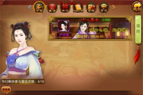 宴会类型主要分为家宴与婚宴两类。玩家每日最多可参与(含自行举办)10次宴会,类型不限。其中,婚宴需在结婚后举办,且每人仅能举办一次;若离婚,该次数将重置。婚宴次数由伴侣双方共享,具体分为普通婚宴与豪华婚宴——豪华婚宴的部分环节次数会更多。此外,个人宴会方面,玩家每日仅能举办一次。