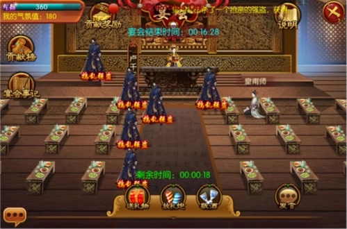 在《熹妃传》的宴会玩法里,参与每个环节都能收获宴会气氛值与个人贡献。当个人贡献累积到指定数值时,玩家可领取对应的奖励;而宴会气氛值越高,就会有NPC前来赠送贺礼,所有参与宴会的人都能领取这份福利。宴会结束后,系统还会依据玩家的贡献排行发放排行奖励。待宴会时间结束,活动将自动关闭,所有奖励都会通过邮件形式发送给玩家。总的来说,宴会玩法会产出大量体力、精力、主角经验以及大补丸等资源。