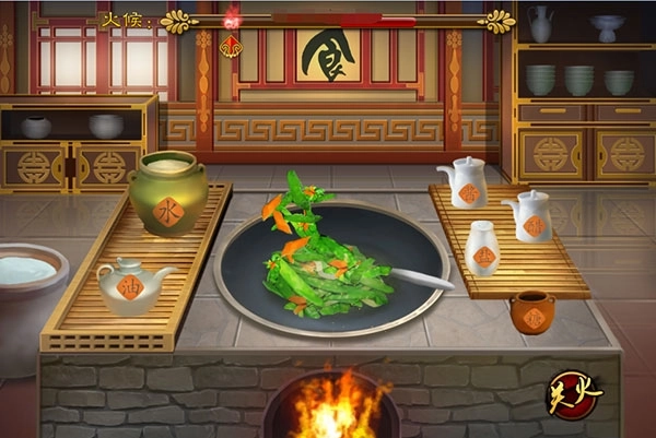 4、另外做菜时的火候也得把控好,得时刻留意上方的进度条,红色区域是最合适的火候,要记得及时关火哦~