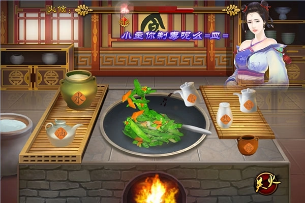 2、若解锁的菜肴所需食材已备齐,点击菜谱界面的“亲自下厨”按钮,就能进入该菜肴对应的炒菜界面。