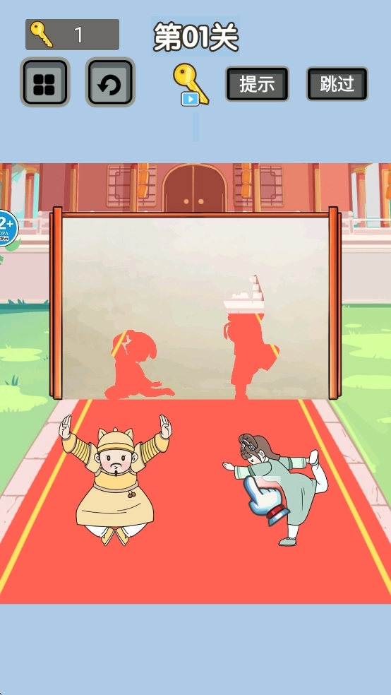 基础解谜模式:按照场景给出的提示,借助拖拽、旋转等操作,协助橘猫摆出正确的姿势,从而完成闯关任务。