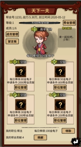 玩家可以申请帮会职位,每个帮会都有除帮主之外的4个职位供申请,获得职位后即可每日领取金龟俸禄!