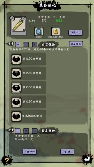 强化装备主要为了打论剑,以论剑为依据,论剑前面两届对命中没有要求,打到第二届以前可以先不升级配饰,写按照鞋子,武器,衣服,帽冠的顺序依次升到20,再把鞋子到40肯定过第二届,然后升级配饰直接到四十,在把其他装备升级到40,就可以考虑把配饰直接升到100,去打莲花,唯我,就离论剑毕业不远了