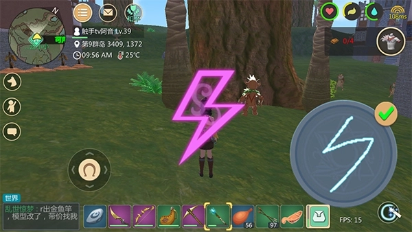 一个三角形功能,朝树释放能召唤树人,朝石头释放可召唤石头人,对前期新手获取食物助力很大。