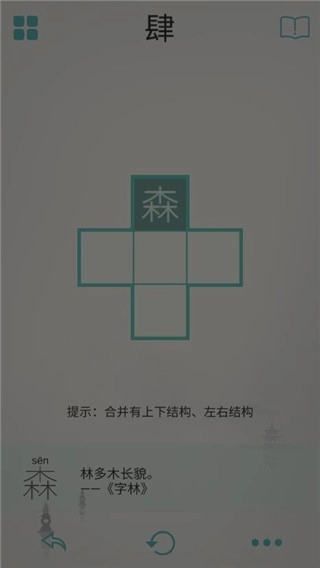 在《木水火土》这款游戏里,玩家要在关卡中利用少量简单汉字组合出目标汉字,核心是通过“木”“水”“火”“土”这四个基础字来合成各种复杂的新文字。这需要玩家充分调动思维去思考,游戏过程趣味性满满,还能在娱乐中收获知识。