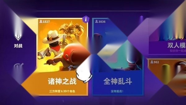 3、调整好后,选择游戏玩法,游戏现有诸神之战、全神乱斗、双人模式、小队模式等玩法;
