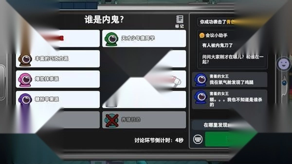 8、玩家可选择发言,以及投票表决谁是内鬼;