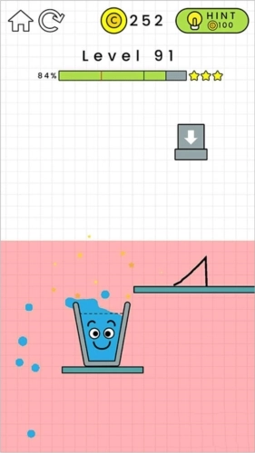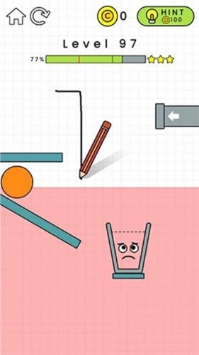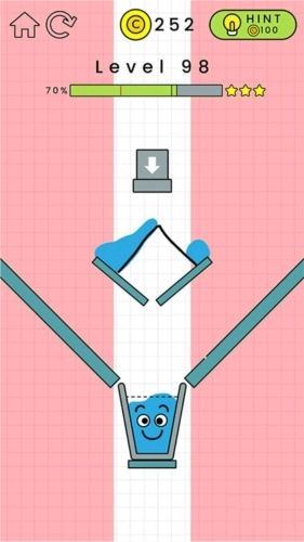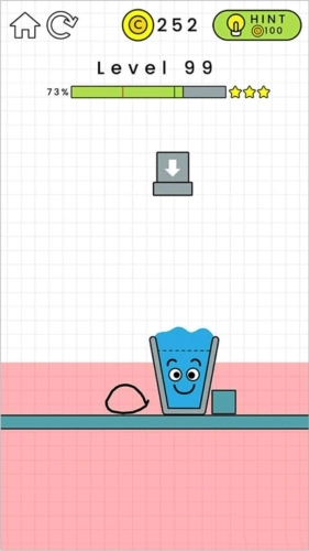 在第99关,你需要画一个物件来让玻璃杯重新立起来,这样才能顺利接住水。