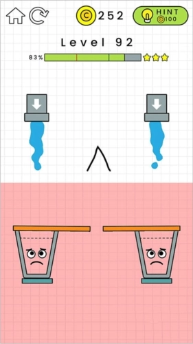 第93关难度不大,只要借助水管,通过线条引导水流,让玻璃杯成功接住水就可以了。