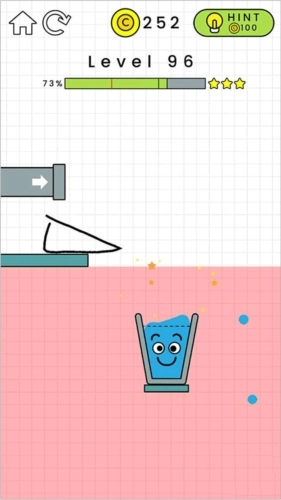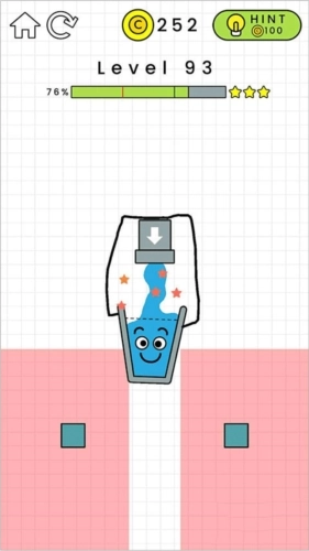 3、这里有丰富多样的游戏关卡,你需要拿起画笔,画出一条正确的路线,为水珠指引方向,让它顺利到达杯子里。