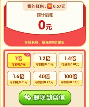 3、只要达成合成目标就能直接获得提现机会,越往后提现奖励越丰厚!