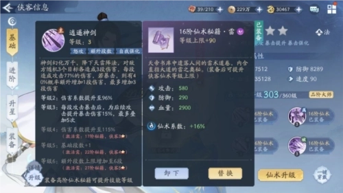 当然,正如前文所提及的,侠客身上具备“四高”的特质,仅仅是星等高是远远不够的,还必须让仙术等级也达到较高的水平才行。