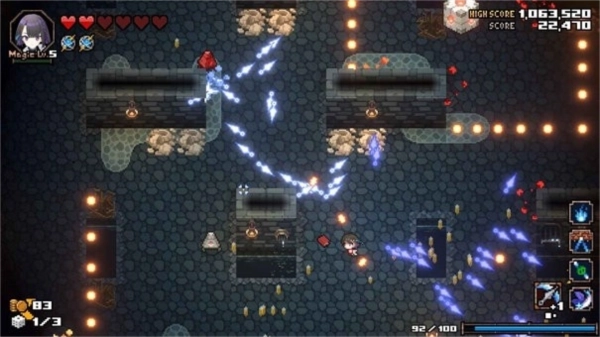 玩家借助双摇杆来操控“探索者”,在迷宫里开启弹幕射击的冒险之旅。每次进入迷宫,其结构都会发生变化,所遭遇的地形、敌人以及道具也都是随机生成的。一旦HP降到0,探索途中获取的道具就会全部消失。让我们跟随探索过程中那独特的魔法,一起攻克迷宫,不断向前!