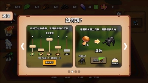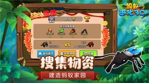 6、收集各类资源并将其运送回你的巢穴,以此提升巢穴的额外奖励,用于喂养蚁后、繁殖工蚁与兵蚁。