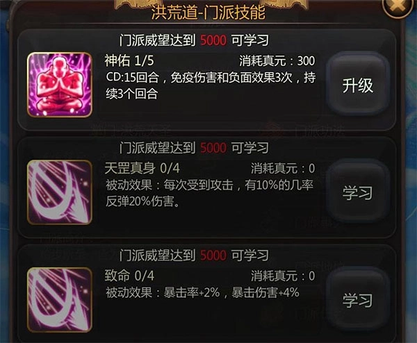 5、在洞府学习技能时,留意左下角的进度条,像5/5、20/20这样的显示就说明该技能已经学完了。