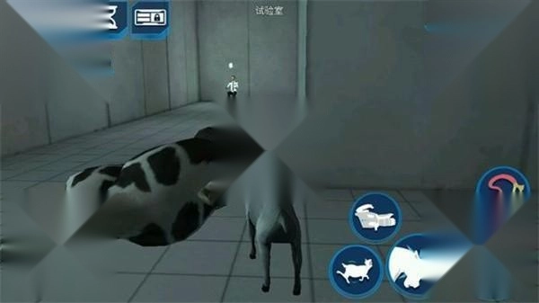 解锁实验室后,进入其中需要完成四个实验,期间踩下蓝色按键会掉落一头奶牛。