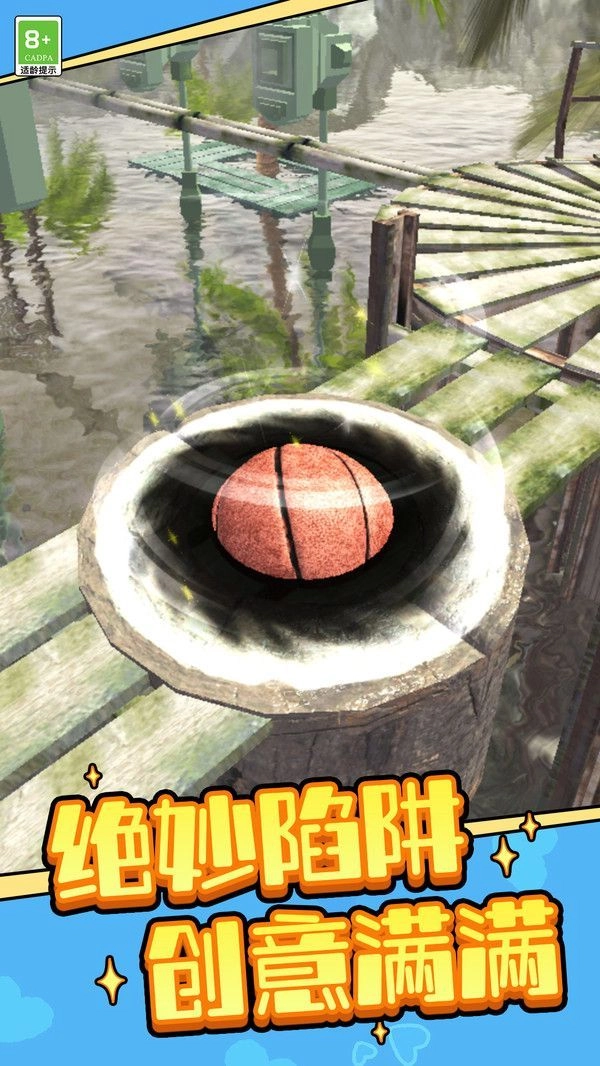 玩家得灵活操控小球,防止它从高处坠落,还要避开各类陷阱与障碍物。
