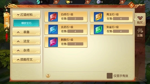 2、用于镶嵌的宝石总共分为白虎石、朱雀石、玄武石、青龙石、麒麟石这五种。