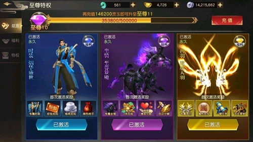2、少侠可借助首充、粮草先行、盗取神鼎、官府任务等途径,收集100片玉玺碎片来合成并激活神龙玉玺。