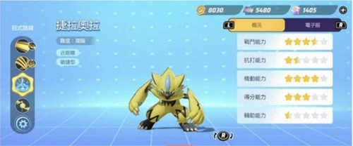 2、第一梯队的精灵里有这么几只,捷拉奥拉绝对是当前版本最强的打野英雄,没有之一。它的登场直接让不少打野英雄失去了上场机会。加点方面强烈推荐电光和放电,激活这两个技能后,一打三完全不在话下。