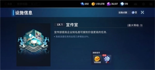 这个设备能比较有效地提升自身刷新高等级任务的几率,还能减少刷新信息票的使用次数。小编比较关注的是它可以提高大家的任务收益,所以算是个挺不错的设施。