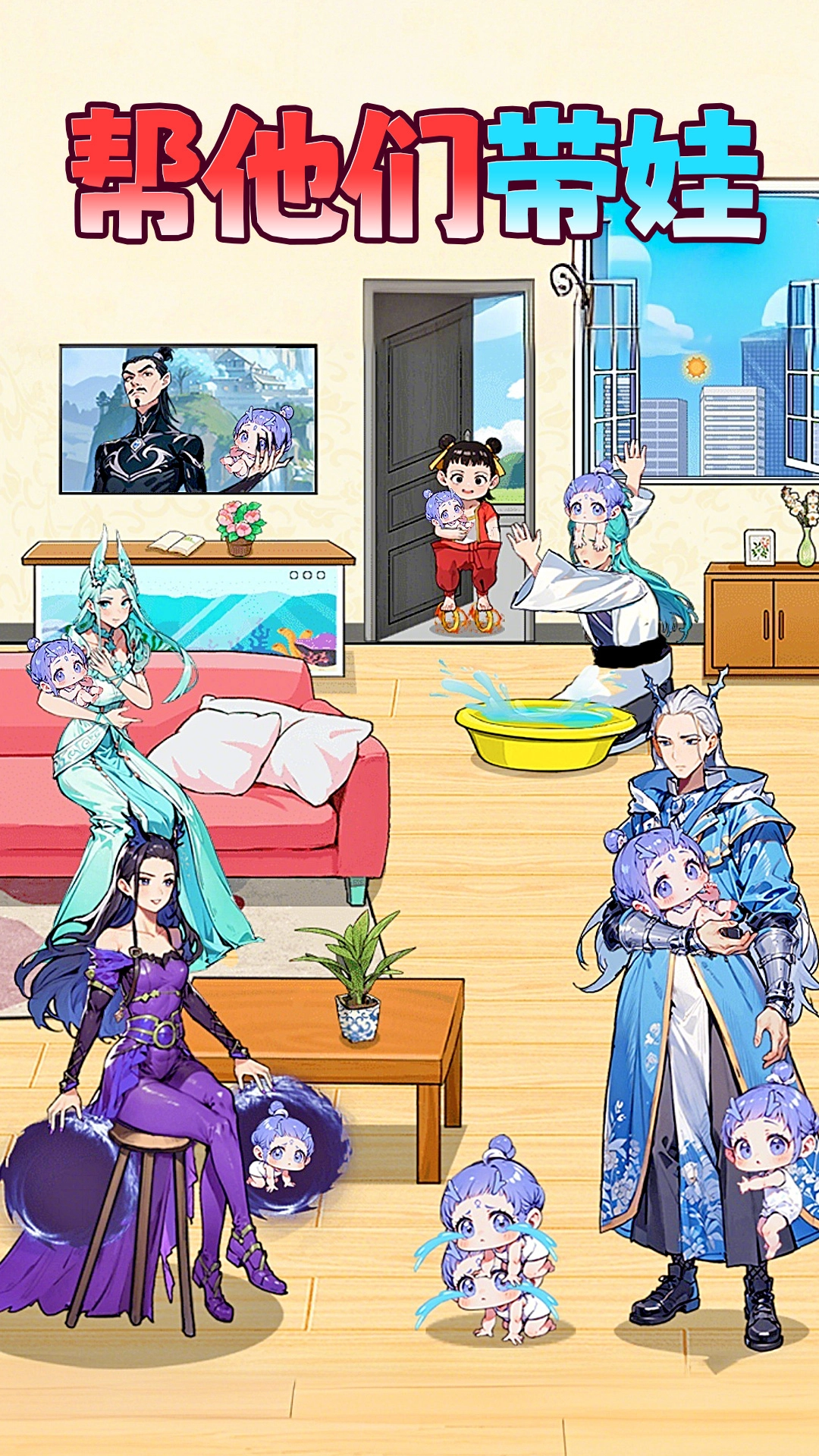 这里有一些风格不同的角色,比如古装人物,玩家需要和这些角色进行互动,帮助他们解决在带孩子过程中遇到的选择题。