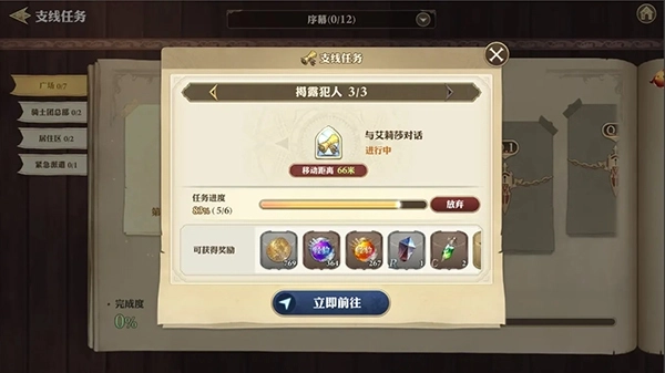 1、在推进主线任务的过程中,你也可以同步进行王国任务,相关内容可通过游戏界面上方的菜单>任务选项,或是城市里的派遣地进行查看确认。