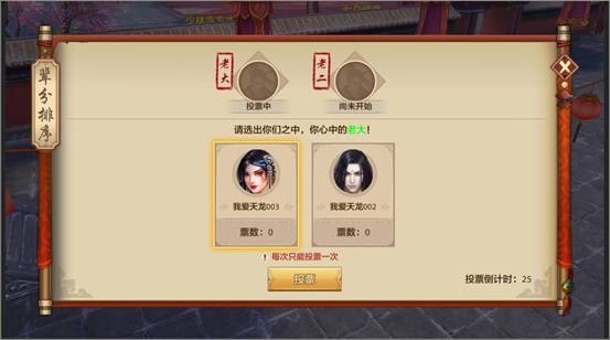 玩家结拜之后,随时都能前往洛阳的王夫子那里进行辈分排序,届时由结拜组的成员通过投票,选出自己心中认可的老大。