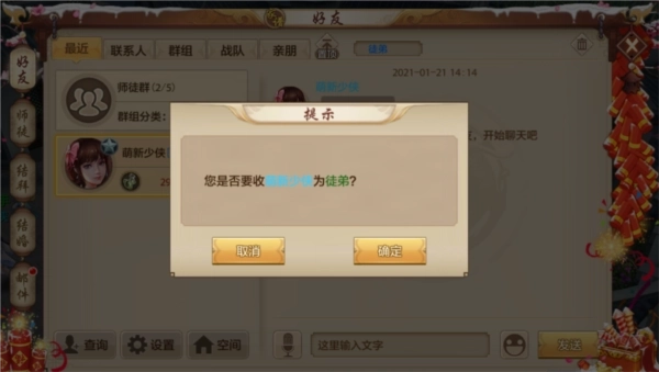 当准师徒双方添加为好友,并完成最终确认后,就能正式结成师徒关系。