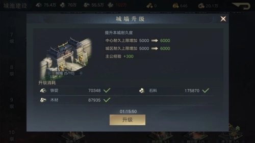 在主城或分城的城建功能里找到城墙,对其进行升级能大幅提升城墙的耐久度。不过这个方法仅适用于自己的主城或分城,而且需要提前规划、未雨绸缪地进行升级操作。