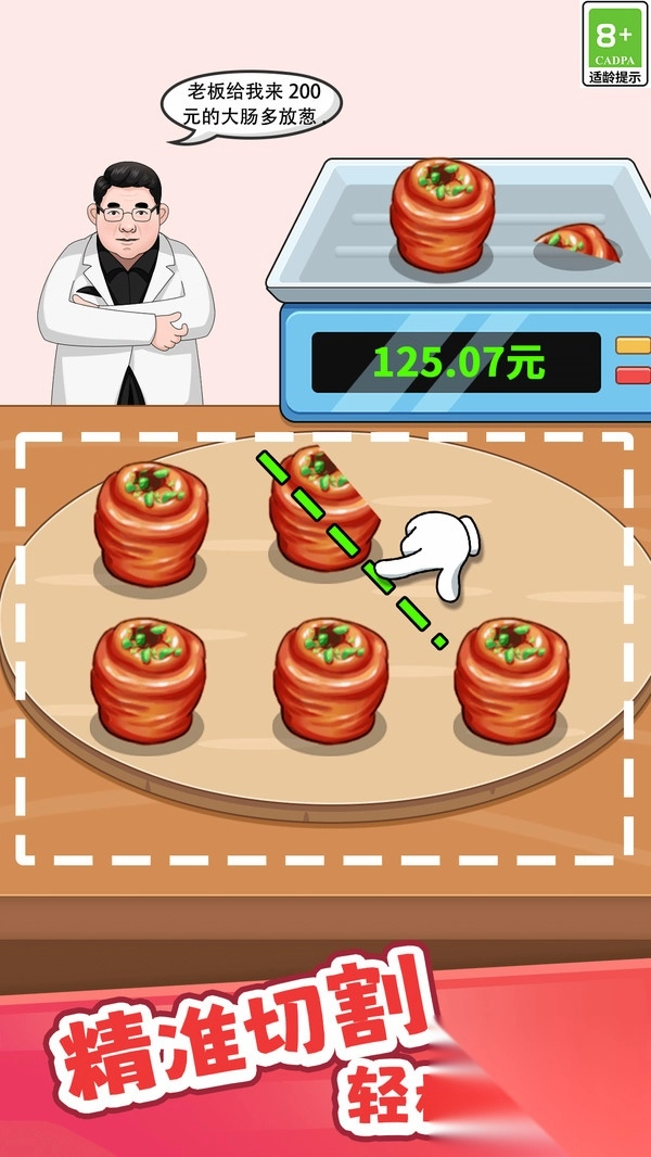 完美画线切切切游戏是一款以切割各类食物为主题的免费模拟经营休闲解压游戏。在游戏里,玩家将化身技艺精湛的切割达人,进入一个活力满满且富有创意的美食天地。你的职责是为前来选购的顾客提供精准的切割、称重等服务,满足他们对美食的多样需求。从新鲜的蔬果到可口的肉禽海鲜,从精美的蛋糕甜品到酥脆的坚果饼干,形形色色的食物都将在你手中被巧妙切割成理想的形态与尺寸。