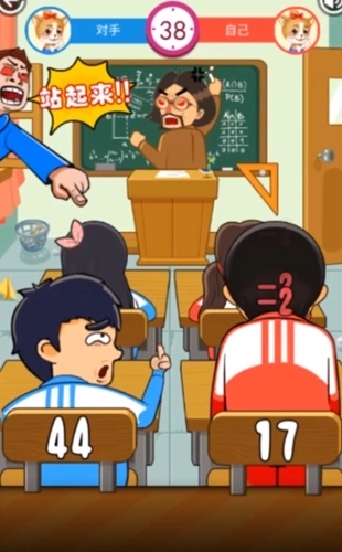 玩法清晰易懂——和同桌在课堂上展开对战。游戏里你化身一名学生,在老师的课堂上跟同桌打闹,谁打闹的次数更多,得分就更高。不过过程中肯定有阻碍,那就是老师和教导主任。打闹时,老师和教导主任会随时查看你(出现感叹号提示),这时你必须立刻停止所有动作。要是乖乖不动,最多只是被打几下;但要是还继续动,就会遭到同桌的嘲笑,还会被扣分。
