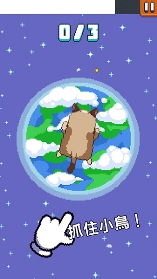 4、想要抓住小鸟,只需拖动不爽猫,瞄准小鸟移动的方向对准它,抓到3只鸟就能完成任务啦。