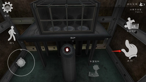 4、经过小编的一番探索,找到了一个按钮机关,只要把白点对准红色按钮,就会出现一只可以互动的手,点击这只手即可。