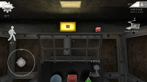 7、接下来我们朝着那个显示红色正方体的荧屏方向前进,途中你会看到一个低矮的入口,届时可以进行蹲下操作。
