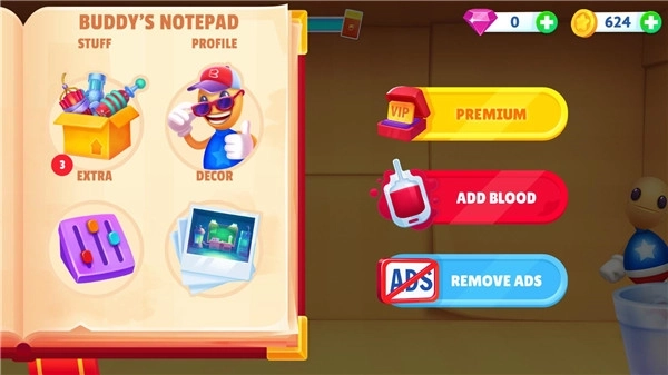 6、不停的打木偶人可以获得钱币,用于解锁更多的道具,进入游戏即可对木偶人做一系列的操作