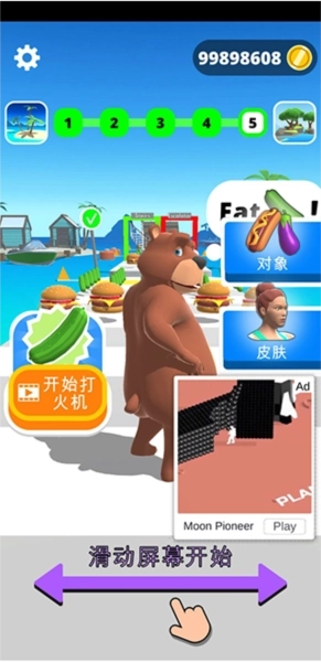 1、滑动屏幕开始游戏