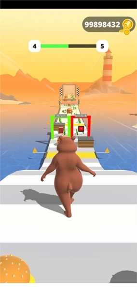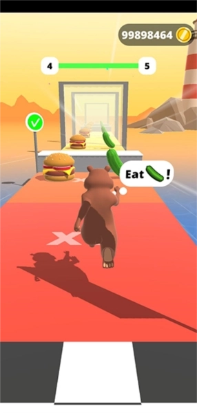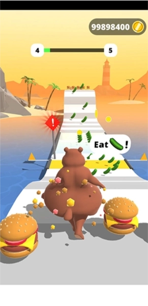 2、这款游戏的玩法十分简单,玩家要操控一个体型偏胖的角色参与跑酷闯关。一路上会出现各种食物,吃到黄瓜能让角色变瘦、更健康,吃到汉堡则会使其变胖;同时还有不少障碍需要玩家跨越,这些都是需要你去克服的挑战。