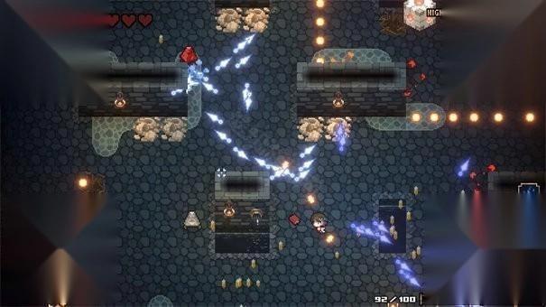 1. 地下城探索:游戏采用双摇杆操控方式,玩家可通过左摇杆控制移动方向,右摇杆进行瞄准操作,从而灵活掌控角色的移动与射击动作。每次进入地下城,其内部结构都会有所不同,玩家需要在这些随机生成的地下城场景中展开探索,通过击败敌人来获取经验值和各类物品。