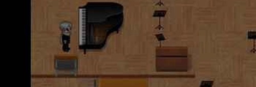 先去右上角查看左边的柜子,会出现一个密码锁,暂时不用管它,我们走到钢琴前面。
