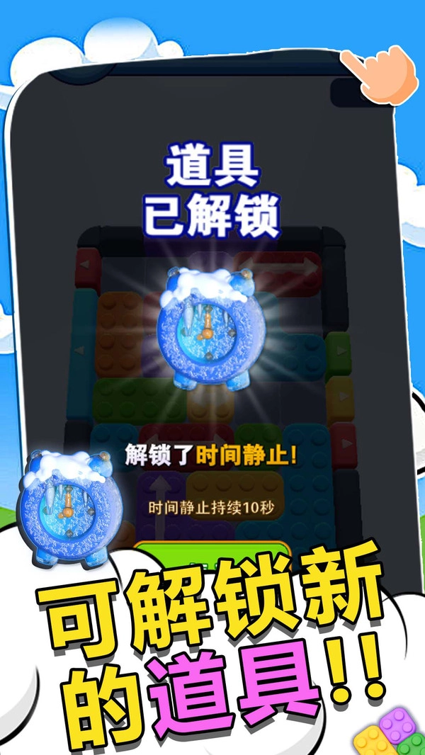 并且借助每一次的方块组合机制,能够非常快速地通关,从而达成通关目标。