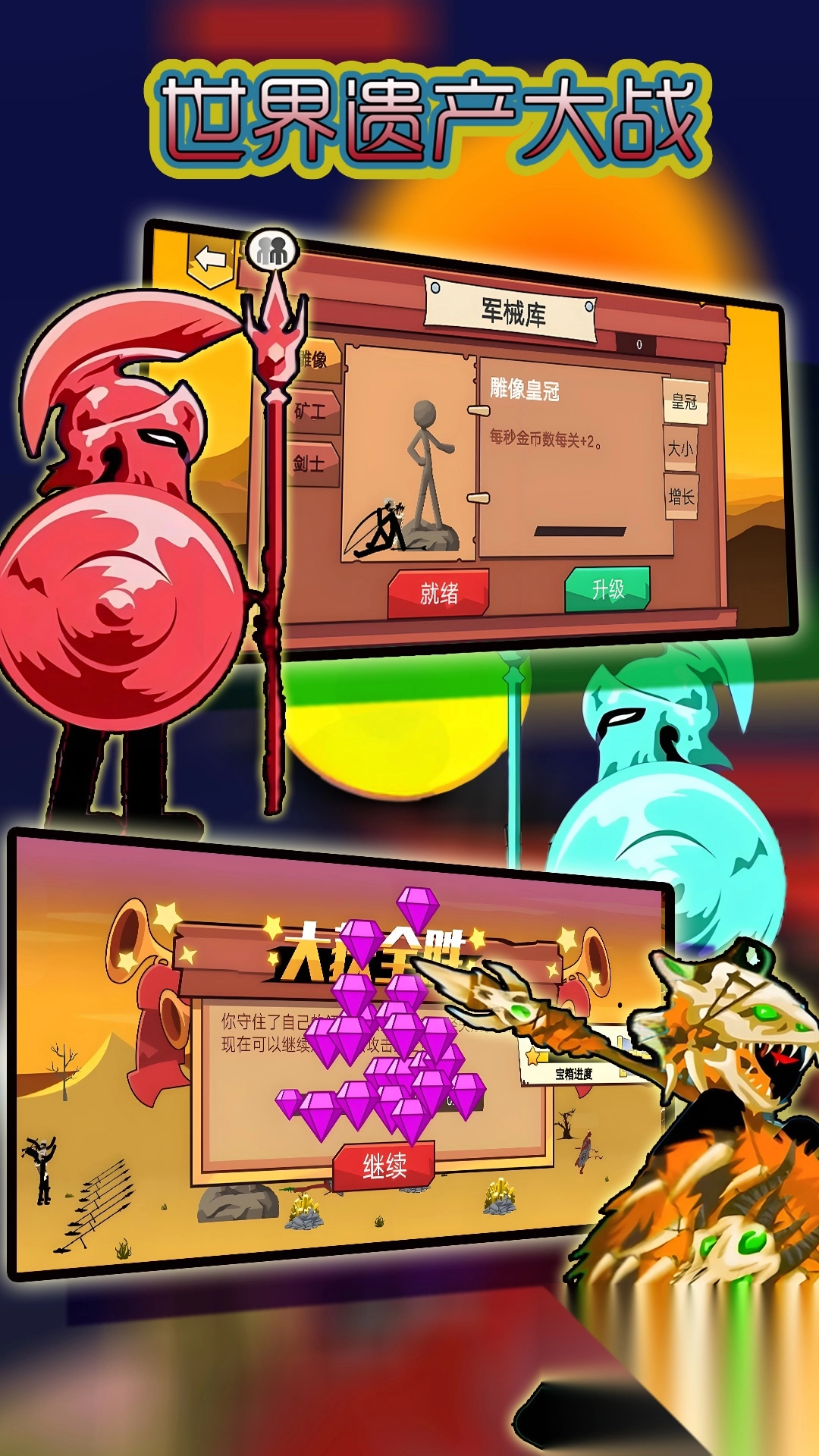《世界遗产大战》是一款以火柴人为主题的策略塔防游戏。在游戏中,玩家需通过挖矿获取金币,进而召唤剑士、弓箭手、长矛兵、法师等不同类型的火柴人兵种投入塔防战斗。玩家需要依据对手的士兵种类,合理调配己方的召唤策略,只有成功破坏对方基地的雕像,才能赢得胜利。游戏提供多种模式可供挑战,且每种模式都设有三种难度选项,大大提升了塔防玩法的挑战性!