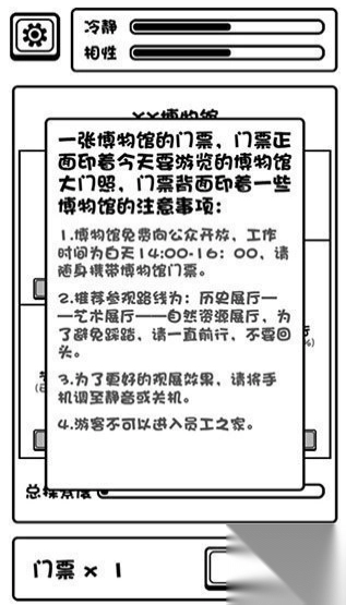 结局五(低契合度):在契合度不算太高的状况下顺利离开博物馆。这是个比较平常的结局,不过也是个稳妥的选择。