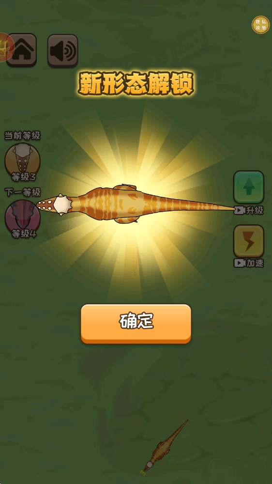 基础攻略 移动狩猎: 左摇杆控制恐龙移动 自动吞噬比自己体型小30%的生物 长按冲刺键(消耗能量)快速追击 进化系统: 进度条满后触发进化 点击进化按钮观看蜕变动画 每次进化体型增大+获得新能力