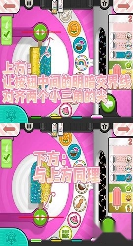 1、根据客人的需求,选择合适的模具和食材,当小箭头移动到菱形方块的位置时,点击按钮停下。