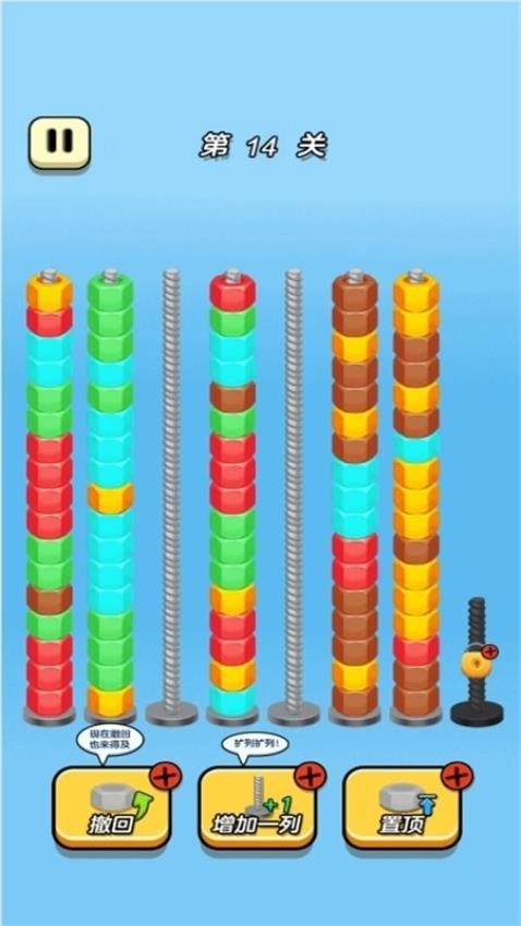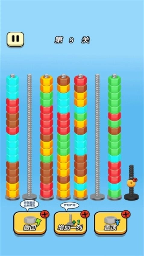 《先天打螺丝圣体》是一款轻松有趣的益智闯关游戏,核心玩法围绕螺母颜色分类展开——你需要将同色螺母精准归置到同一根螺丝钉上。游戏通过巧妙的关卡设计,同步考验玩家的观察力、逻辑思维与手速;随着关卡深入,难度会逐步升级,更多丰富的色彩组合与机关挑战也将解锁,为你带来层层递进的成就感。